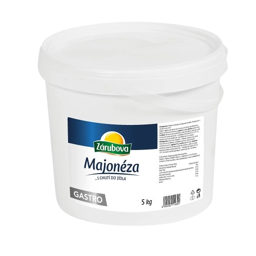Zloženie: rastlinný olej repkový 50 %, pitná voda, kvasný ocot liehový, zahusťovadlo (modifikovaný škrob), stabilizátor (xantánová guma), VAJEČNÉ ŽĹTKY, HORČICA (HORČIČNÉ SEMENO, korenie), jedlá soľ, cukor, konzervačná látka (sorban draselný).