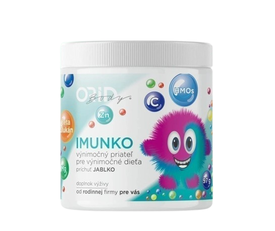 IMUNKO je detský výživový doplnok v podobe prášku, ktorý sa rozpustí vo vode a vytvorí chutný nápoj s príchuťou jablka na podporu imunity detí. Má komplexné zloženie a obsahuje: