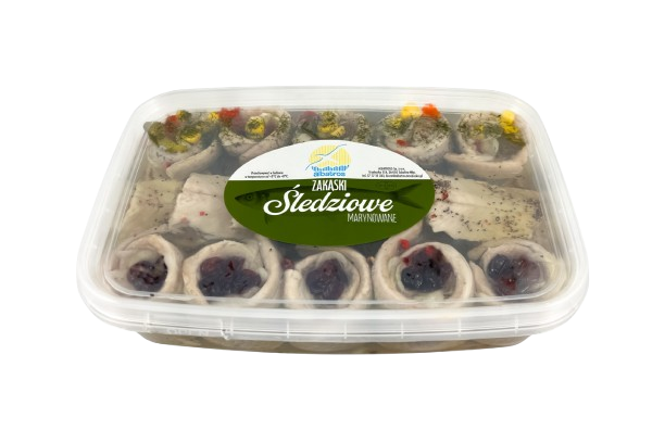 – sleďové rolky s nakladanou paprikou, cibuľou, nakladanými uhorkami a kukuricou