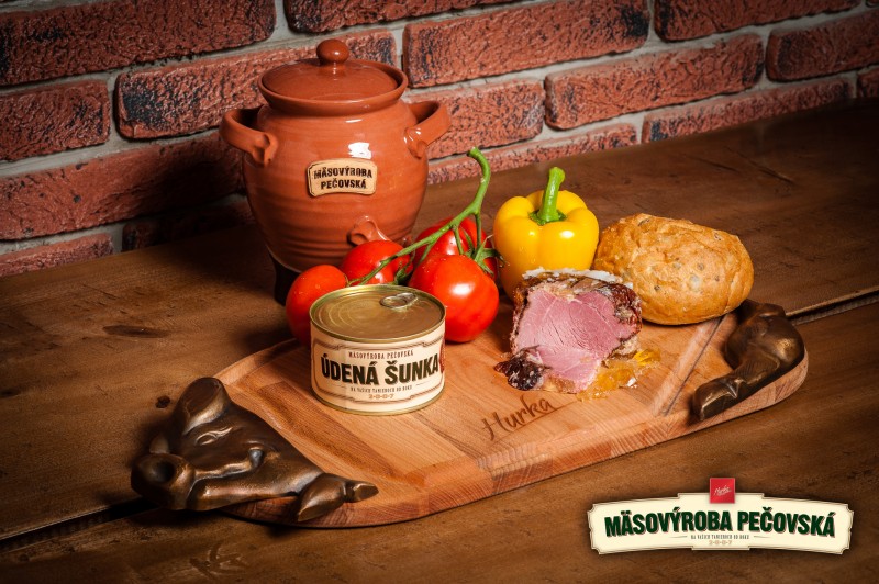Zloženie: údené stehno 91% (bravčové stehno bez kosti 90%, pitná voda, jedlá soľ, zmes korenia max.2%), bravčové kože 9%.
