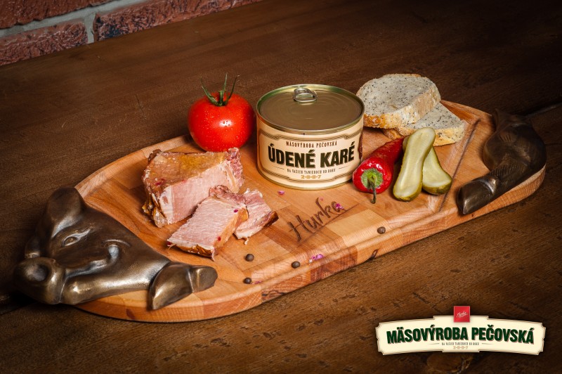 Zloženie: údené karé 91% (bravčové karé bez kosti 90%, pitná voda, jedlá soľ, zmes korenia max.2%), bravčové kože 9%.