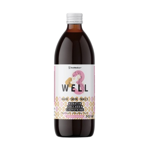 WELL 3 je výživový doplnok založený na jedniečnom komplexe troch prvkov – Keratínu, L-Cysteínu a Kolagénu, ktoré podporujú zdravé vlastnosti a regeneráciu vlasov, nechtov a pokožky, dodávajú im zdravý vzhľad a sviežosť. Okrem komplexu troch základných prvkov sú do zloženia zakomponované prírodné extrakty z prasličky, žihľavy a bambusových výhonkov v symbióze s minerálmi, vitamínmi a zdravými kyselinami, ktoré dodávajú vlasom, pokožke a nechtom krásu a vitalitu.
